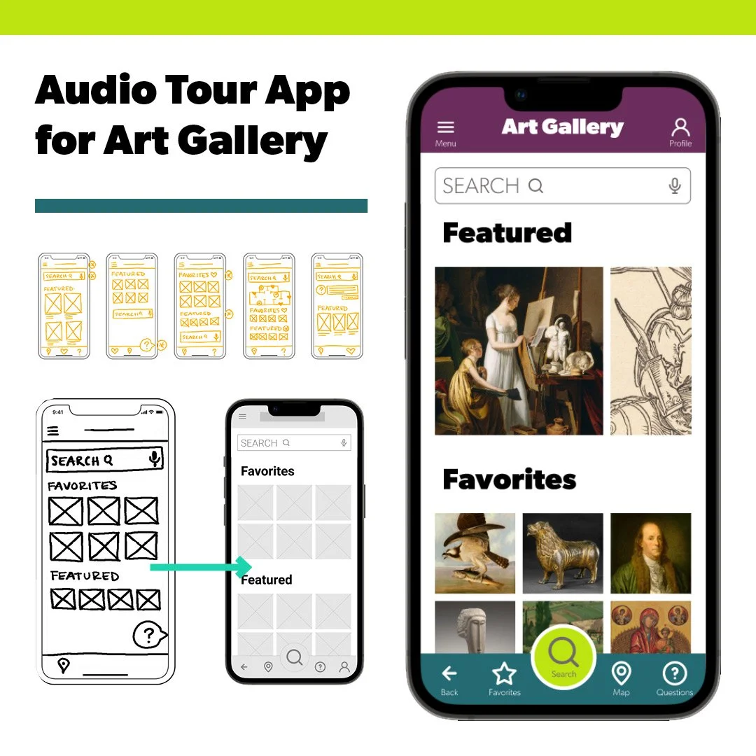 Design an audio tour app for an art gallery that helps new and experienced gallery visitors browse the collection, learn information about the artwork, and locate art within the gallery.