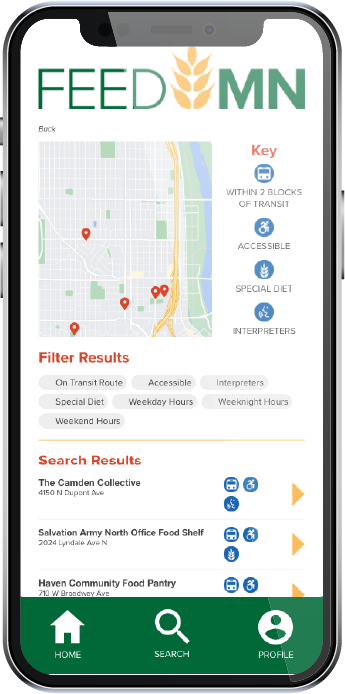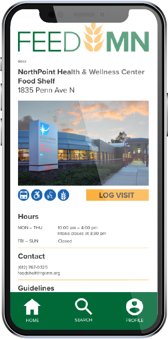Design a way for people to find local food banks, search and filter based on specific criteria, and record notes about their visits.