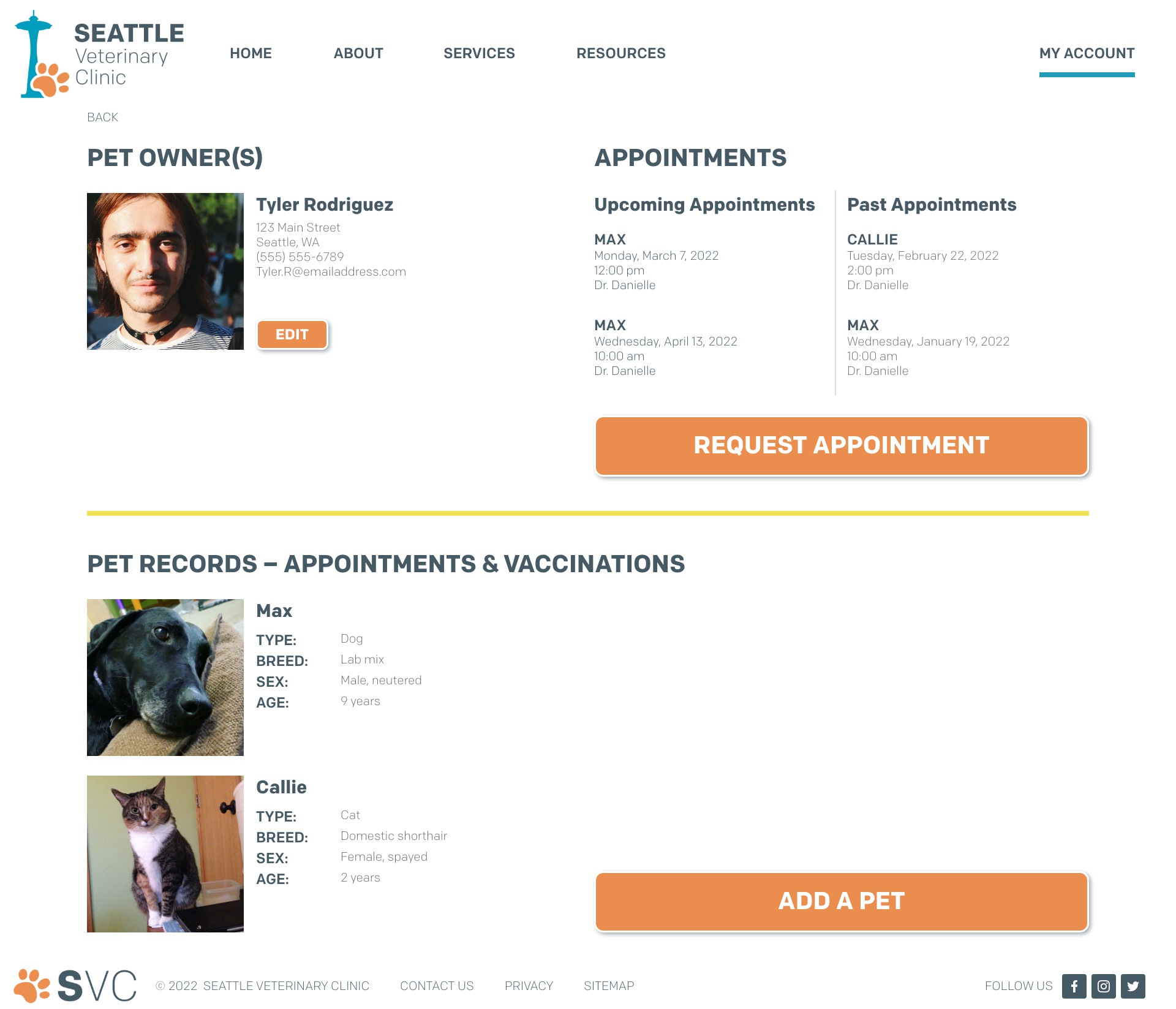 App & website design: new pet registration for veterinary clinic